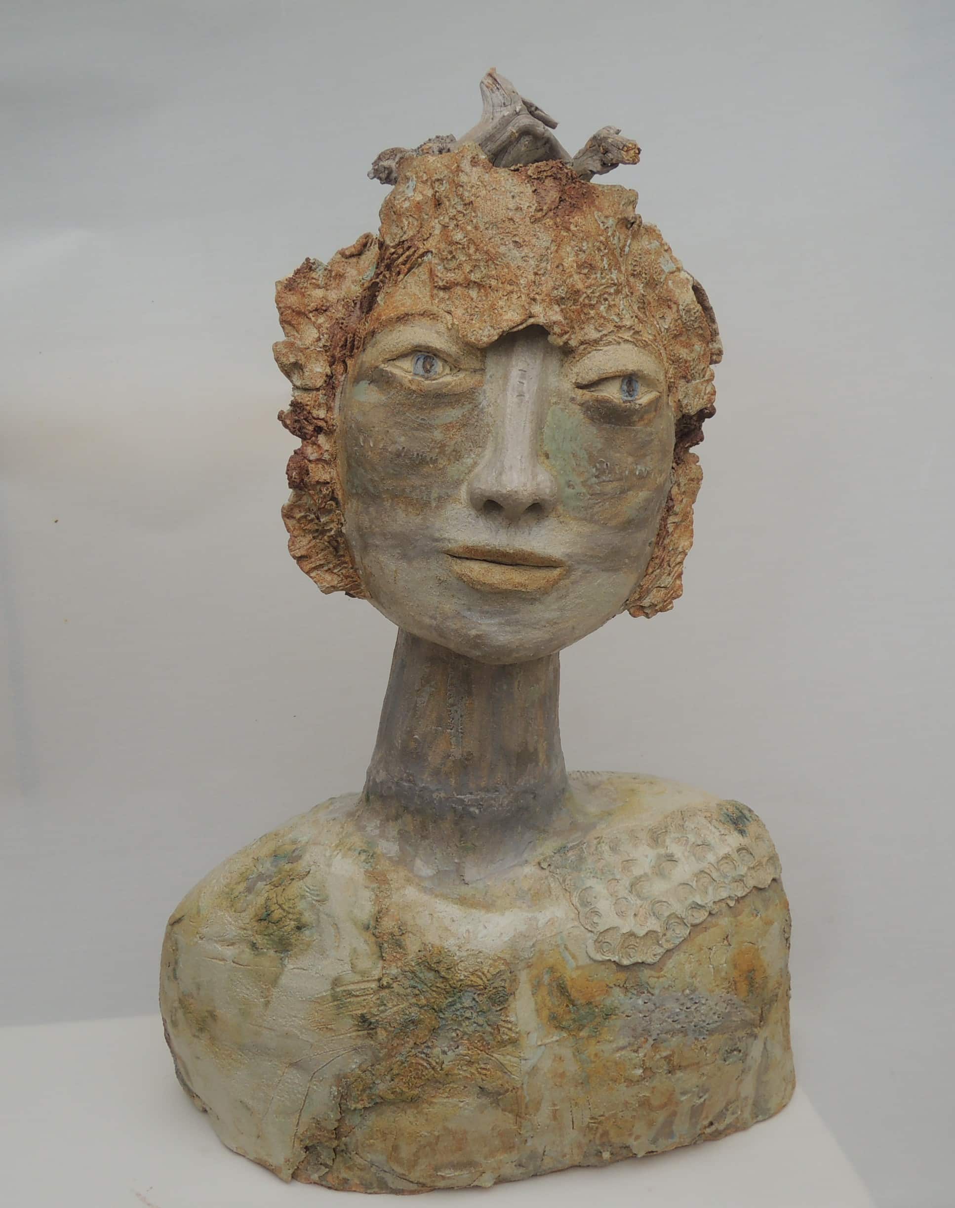 Formée aux Arts plastiques, Ghislaine de Rougé découvre la terre par le tournage avant d’élargir progressivement sa pratique. En 2011, parallèlement à une recherche généalogique autour de la « réparation » du Féminin, naissent des figures sculptées imaginaires et oniriques.